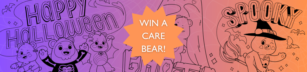 For your chance to WIN* your very own Care Bear, enter our Halloween colouring competition! Prizes will be given for the most colourful entries we receive!