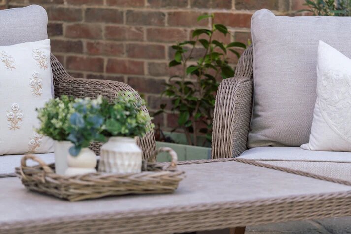 Create a serene and stylish outdoor retreat with this stunning Chilham Wicker Sofa Set. Designed with a blend of modern elegance and boho charm, the 5-Seater Lounge Set includes a spacious three-seater sofa, two beautifully crafted armchairs, and a height adjustable coffee table—ideal for relaxing and entertaining in style.