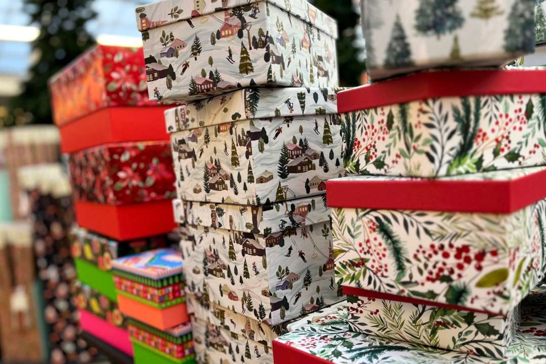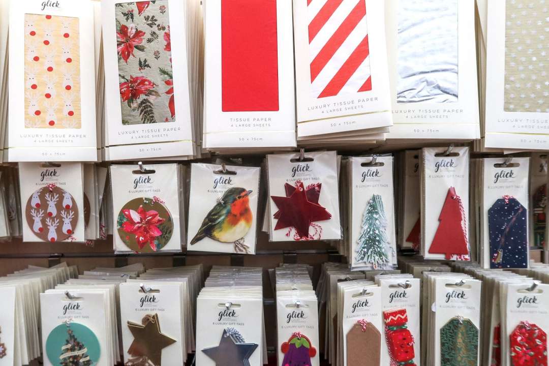 A selection of gift wrap, bags and bows to beautify your presents. Look out for our environmentally friendly wrap, gift tape and ribbons this year which are made from FSC materials and are fully recyclable, as well as plastic-free packaging across gift bags and greeting cards.