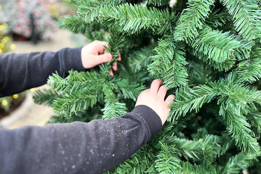Before you start, loosen the branches by giving the sections a gentle shake. Fully fan out the branches on each section. For tall trees, fan out the branches before you place the top section on.