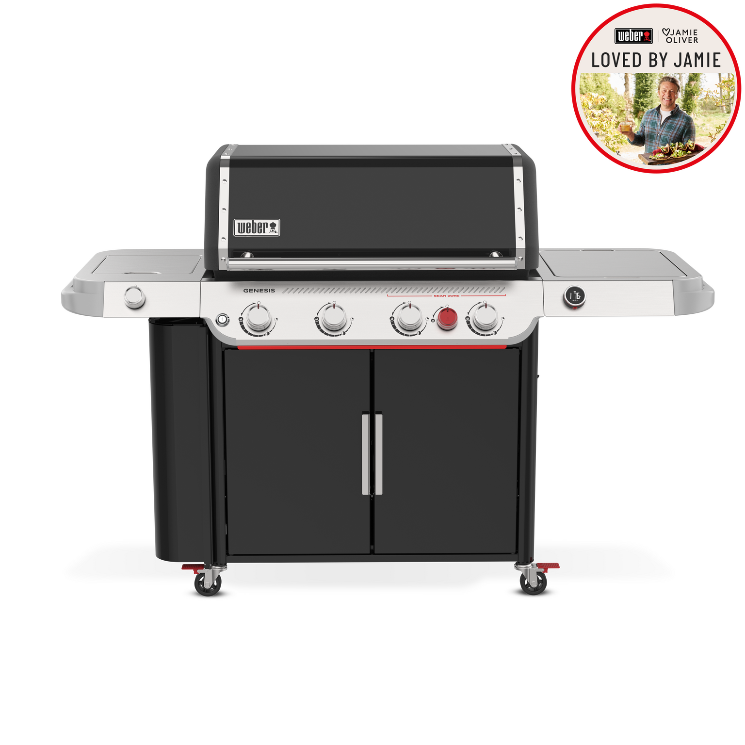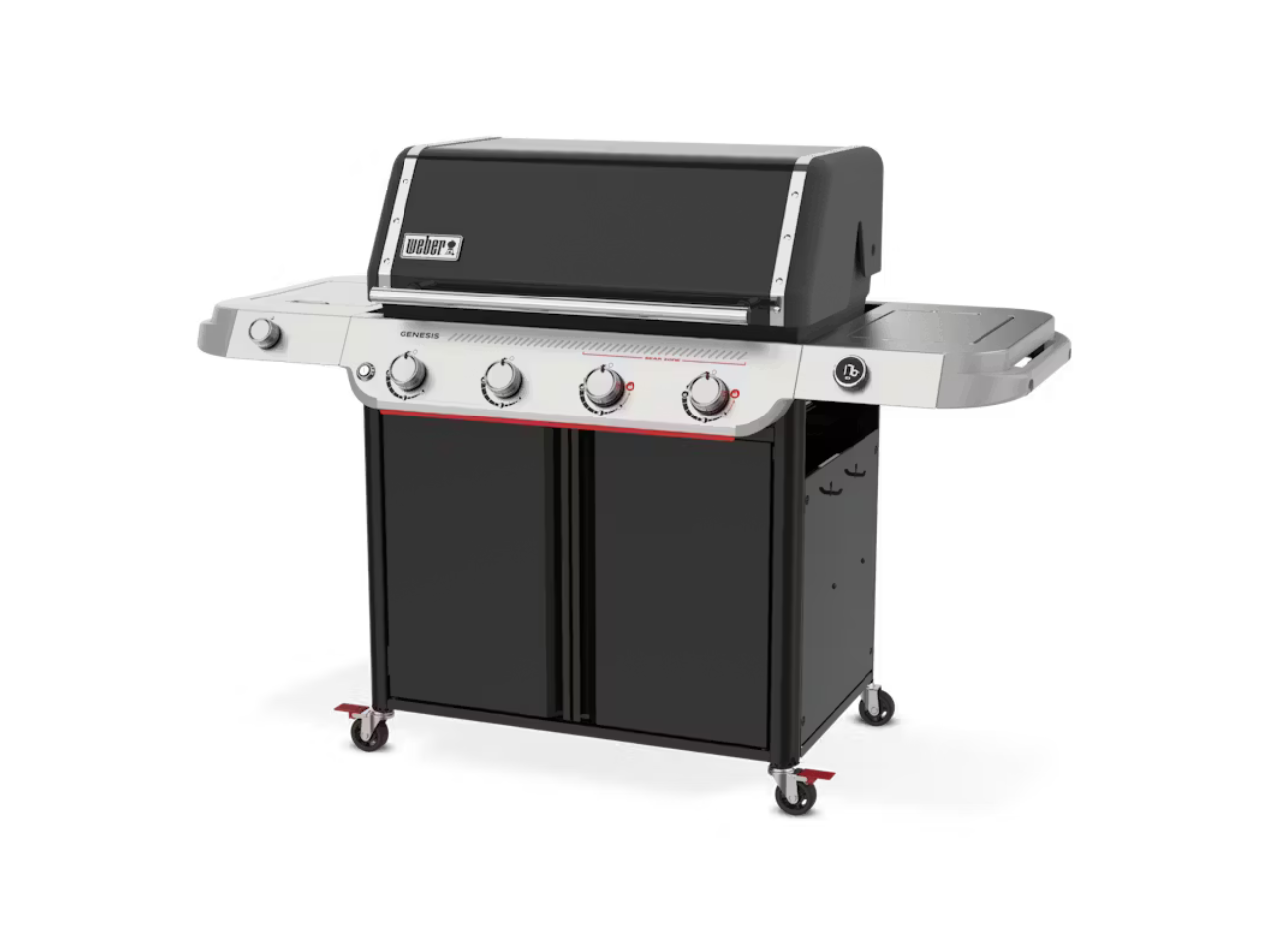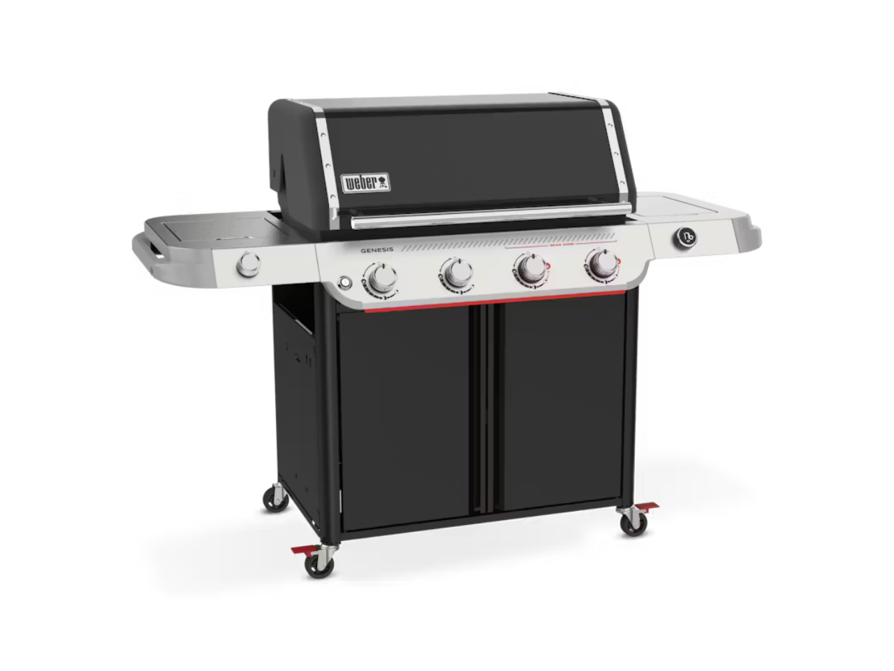 Take your entertaining to the next level and create unforgettable food with the reinvented 4-burner Genesis® E-435W Gas Barbecue with Sear Zone and Side Burner. Crank up the heat with two Boost Burners that unleash up to 35% more power in the extra-large Sear Zone for bold, flavourful sear marks on meat, fish, and vegetables. Get even heat across the cooking grates with the upgraded high-efficiency PureBlu burner system that ignites reliably and maintains a consistent gas flow. Enjoy a side burner for simmering or sautéing and an easy-to-read digital thermometer.