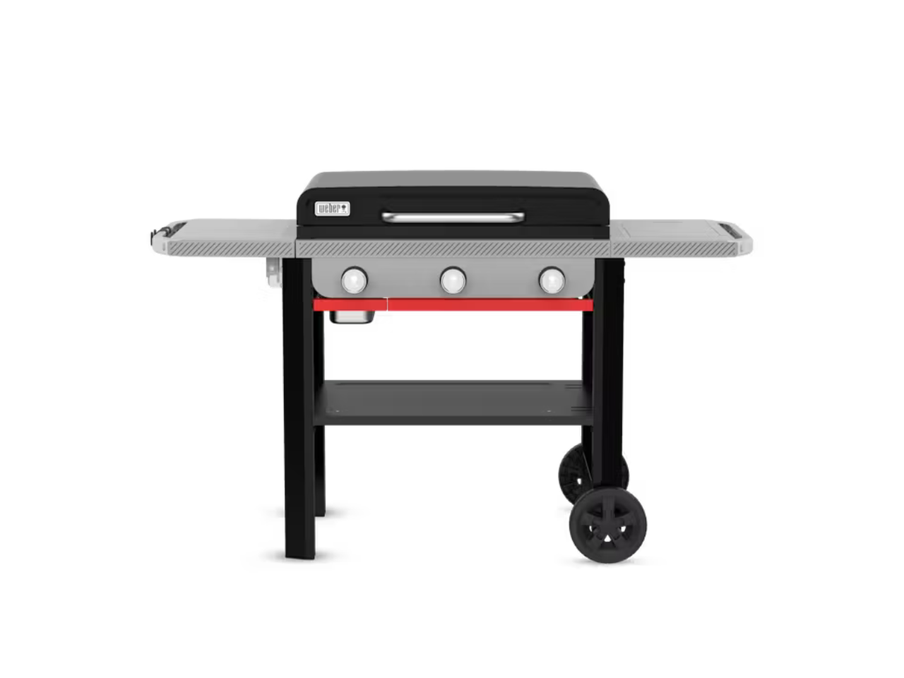 Have more fun griddling on the game-changing Weber® Slate® GP 71cm Premium griddle. Its stick-resistant, porcelain-enamelled cooktop is ready to cook on right out of the box so you can create juicy smashed burgers, flavourful stir-fries, beautifully seared seafood, vegetables and more. This griddle quickly heats up to more than 260°C and provides even heat across the surface. Wind guards prevent the burners from blowing out, and the cooktop is set close to the burners to ensure a steady temperature. Three independently controlled burners allow for multi-zone heat, so you can cook perfect pancakes on low while crisping up bacon on high all on the same cooktop. The surface is safe for metal tools, so you can flip, press and scrape without worry. Keep your griddle gear near with a variety of accessories that drop into the Weber Works side table (right) or snap onto Weber Works side rails. The left side table folds down to save space when you’re done.