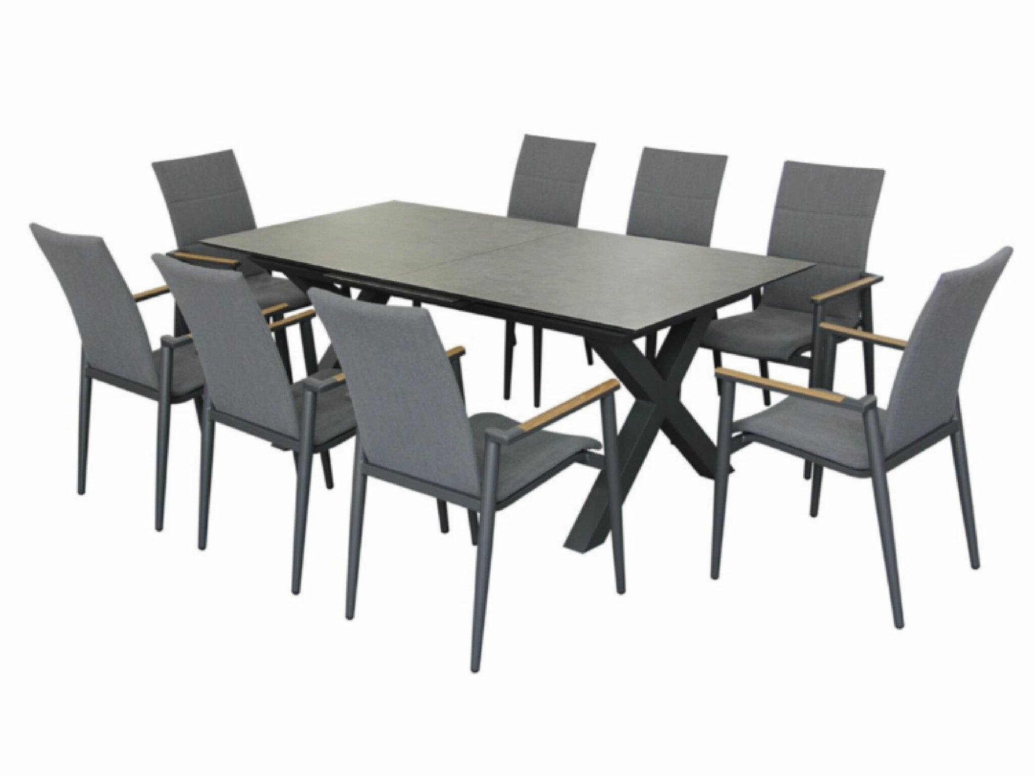 The Sofia Deluxe 8 Seat Set in Anthracite brings refined style and everyday functionality to your garden. The extendable table adjusts with ease to seat more guests, while the eight padded, stackable Textilene chairs provide breathable comfort and luxurious relaxation. Built from durable aluminium frames and weather-resistant materials, this set is made to withstand the elements season after season. The contemporary Anthracite finish adds a sophisticated touch, making it a welcoming choice for family gatherings and evenings with friends.