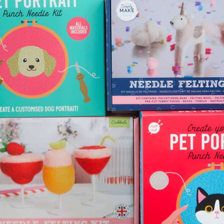 Choose one of our creative craft and hobby kits, including felting, punch needle sets and crochet goodies.